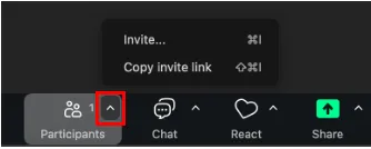 - When the meeting starts, notify the participants by pressing “^” next to “Participants” on the meeting screen and “Copy invite link” or by “Copy Link” from the green shield symbol at the top of the meeting screen and sending the link to the participants.
