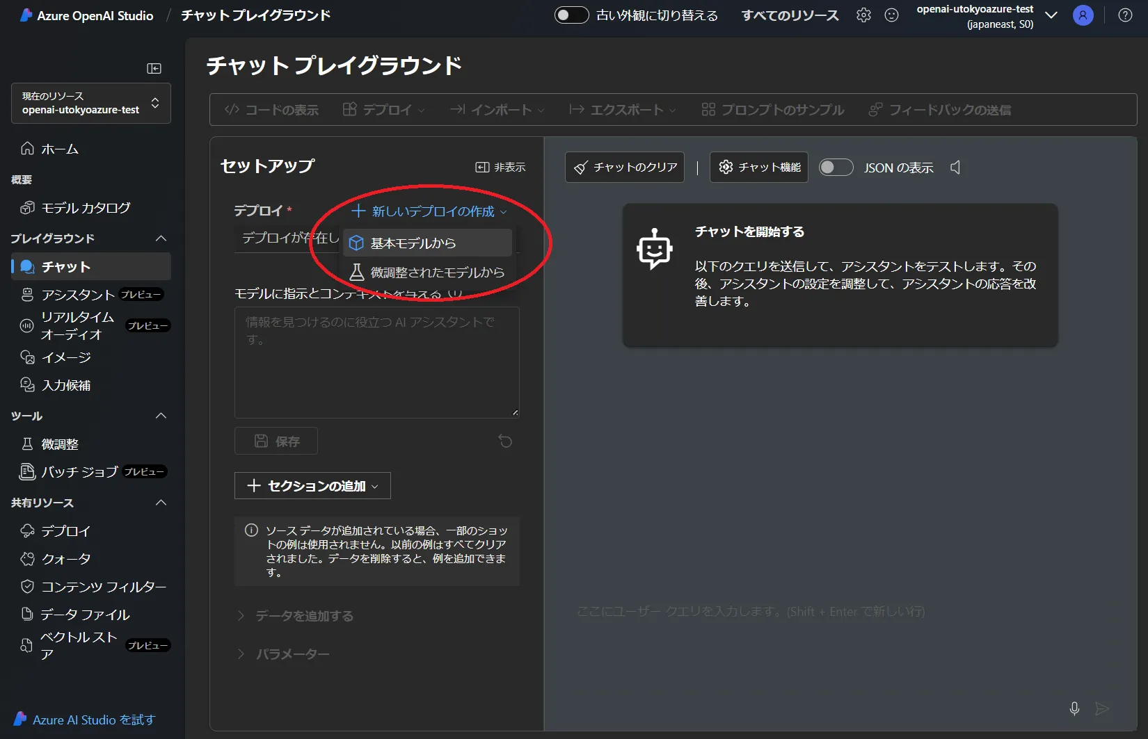• チャットプレイグランドが下図のようになりましたら完了です.