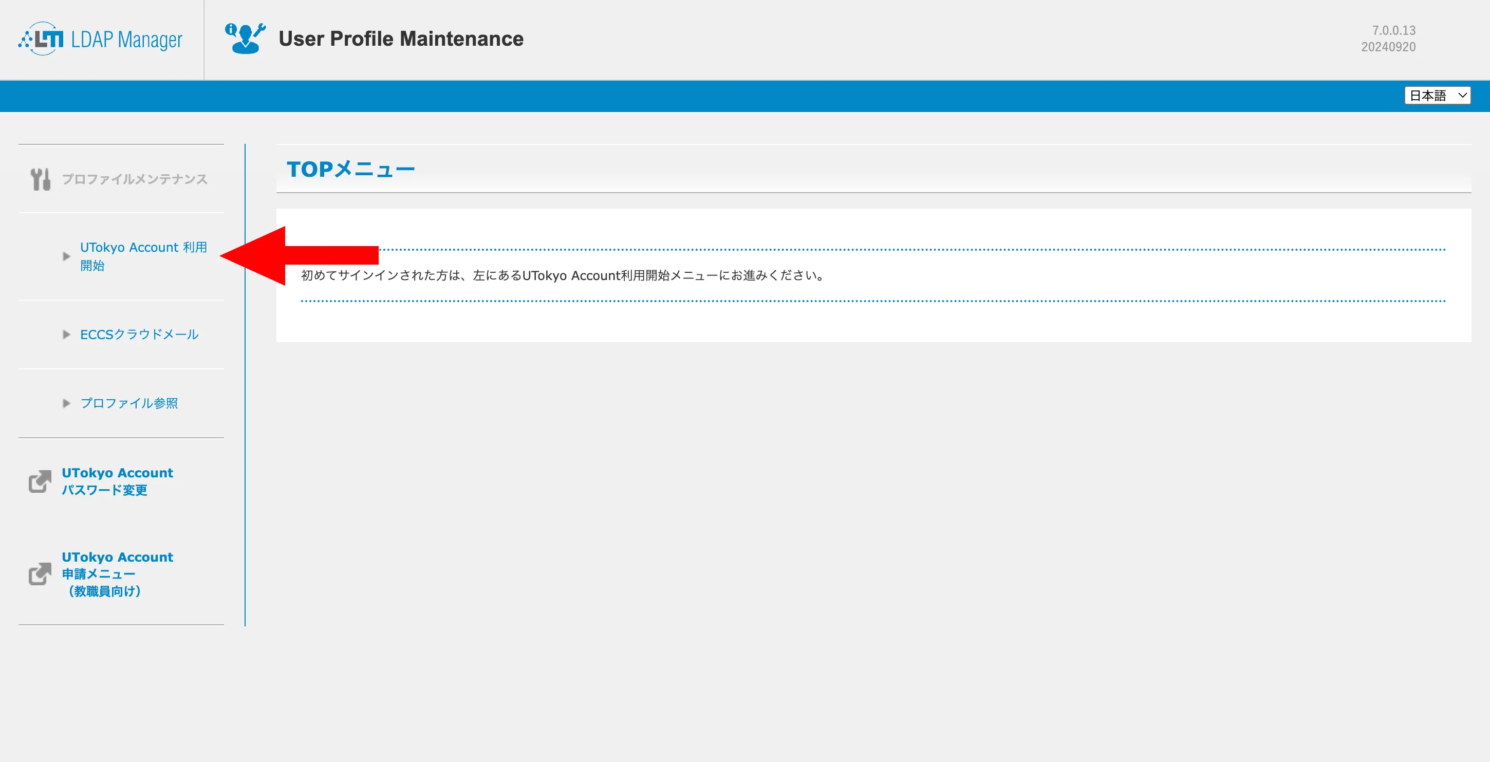 - UTokyo Account利用者メニューにアクセスしてください.