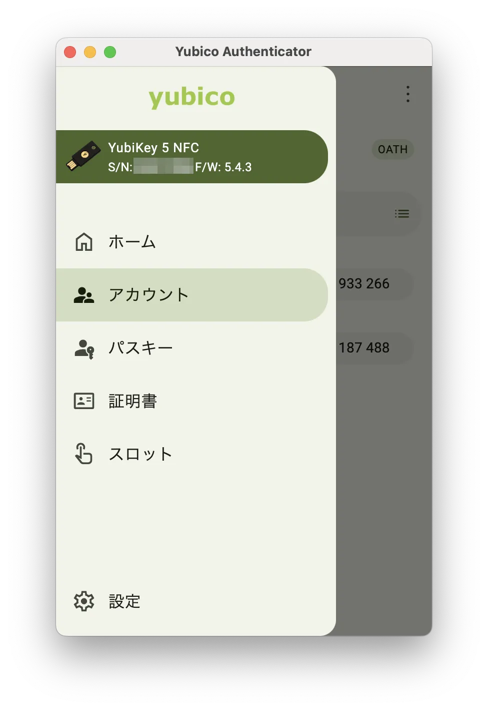 4. Yubico Authenticatorアプリにアカウントが追加されていればOKです.