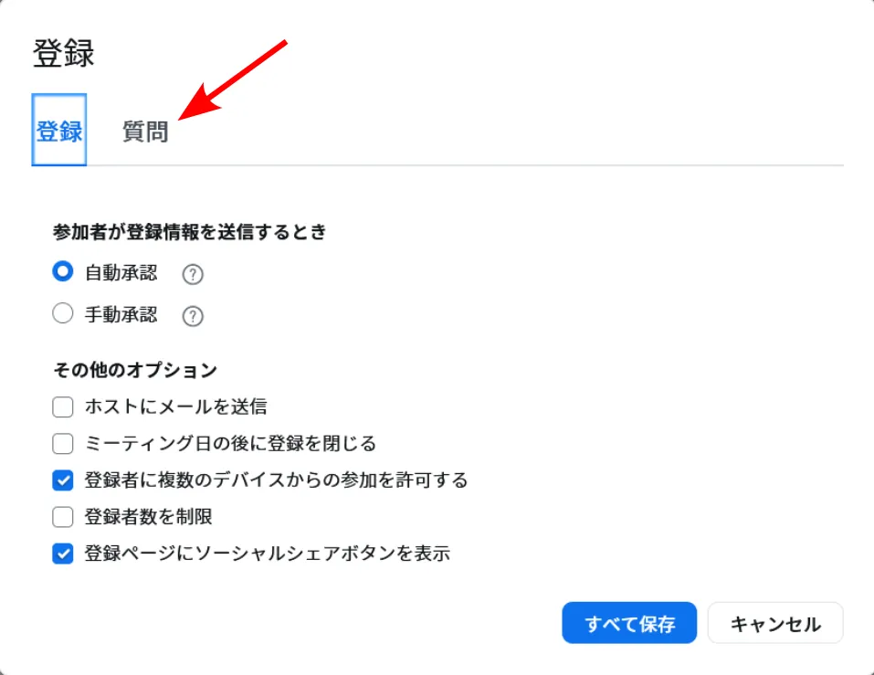 - 「ミーティング日の後に登録を閉じる」チェックボックスをオンにしてください.