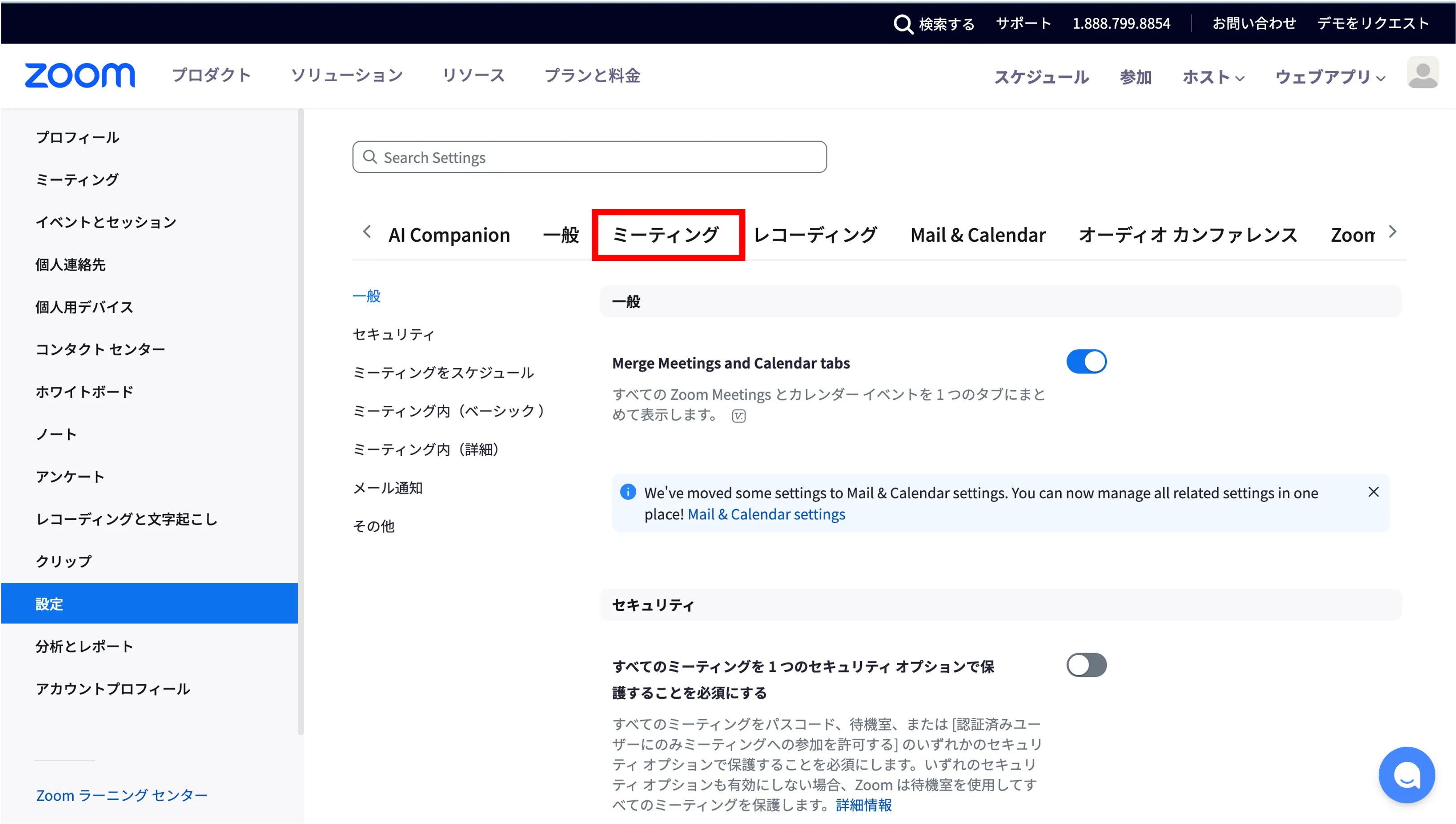 Zoomのウェブポータルの他の設定画面にもチャットに関する項目があります.